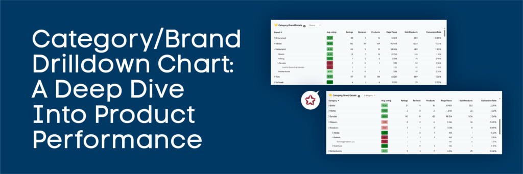 Imagine having a bird’s-eye view of your entire product assortment, segmented by category and brand. The Category/Brand Drilldown Chart does exactly that, offering a clear, interactive way to analyze product performance through the lens of customer feedback.