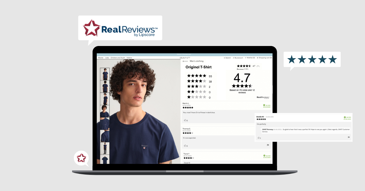 After a recommendation from partner Digitroll, GANT switched to Lipscore. The reason was clear: Lipscore offered a simple, transparent way to collect and publish only verified reviews, direct from real buyers.