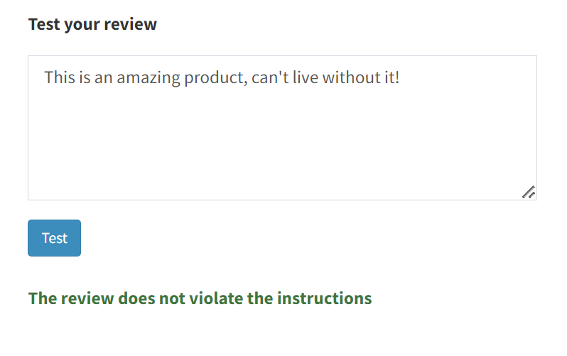 If a review meets the guidelines, you will see a green notification saying “The review does not violate the instructions”.