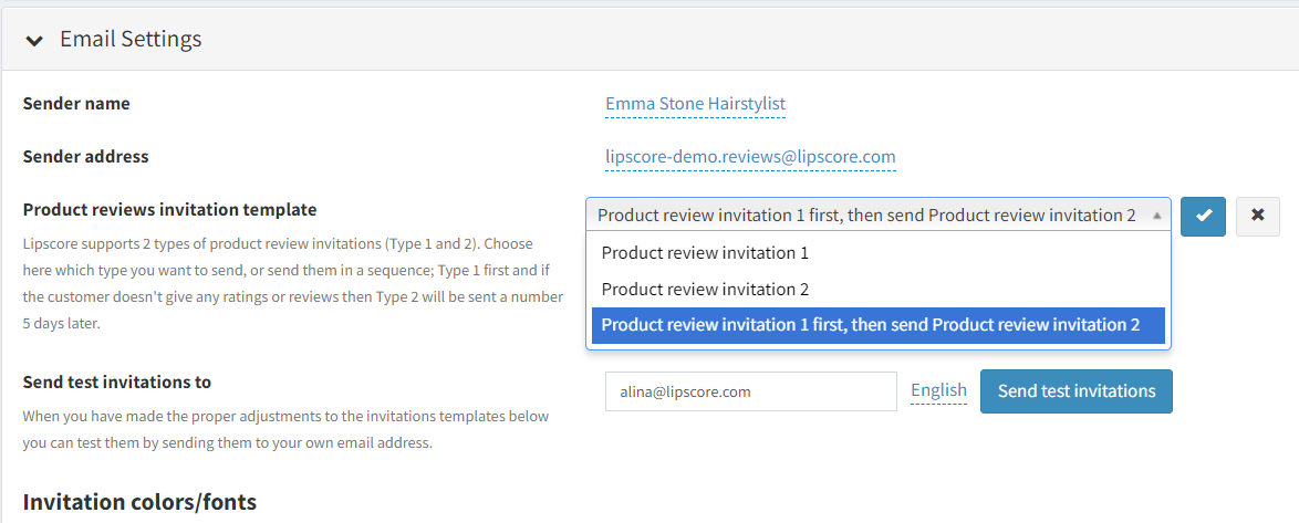 Even if all the three invitations are active in your account we never send 3 emails to one shopper. In the Invitation setup you decide on the percentage of shoppers who should be asked about their shopping experience (service review) vs how many should be asked about their satisfaction with products (product review). This means that one shopper receives either a service review request or 1-2 product review requests, but never all the 3 of them.