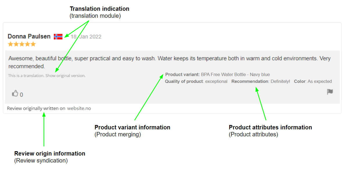 - Translation module (automatic translation of reviews across websites in different countries)