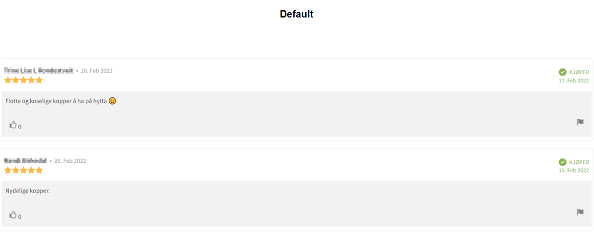The default Reviews list has gray background and stars are yellow. The color of stars will be changed automatically if they are changed in the Rating widget. The color of texts and other elements of the widgets can be changed in CSS in the Lipscore account or in your website code by your own developers.