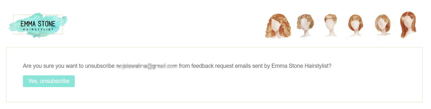 If they do, they will be redirected to a confirmation page that says: “Are you sure you want to unsubscribe [email protected] from feedback request emails sent by CompanyName?”